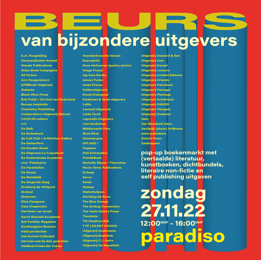 Context Every year, Paradiso hosts a weekend dedicated to independent publishing, transforming the venue into a shared space for books, printed matter, and graphic experimentation. The event brings together publishers such as Valiz and Onomatopee alongside work from the Graphic Design department of the Gerrit Rietveld Academy, positioning Paradiso as a meeting point between established practices and emerging voices.