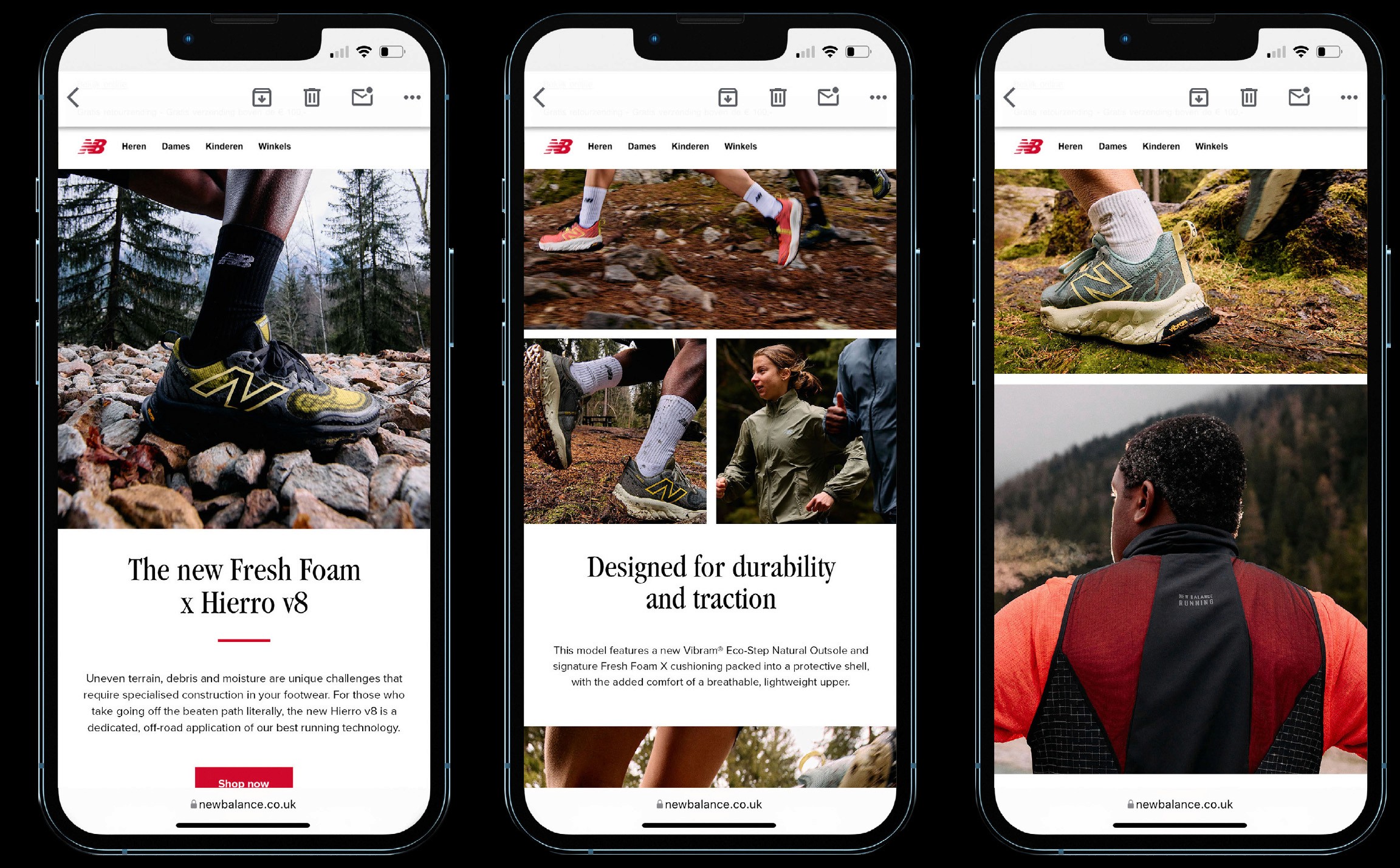 Context The Hierro v8 marks the next evolution of New Balance’s trail running franchise — built for endurance, protection, and performance in demanding terrain. Shot in Chamonix, a landmark destination for professional trail runners, the campaign grounds the product in an authentic alpine environment while showcasing the broader outdoor apparel range. Design & Art Direction The visual direction centers on real terrain, natural light, and functional movement, reinforcing the shoe’s purpose-built performance. Casting focuses on experienced trail runners, while styling and pacing highlight the relationship between body, product, and landscape. Wide alpine views are balanced with close, tactile details to emphasize durability, construction, and materiality — positioning the Hierro v8 as both a technical tool and a trusted companion in the mountains. Team Photographer/CD: Pim Rinkes Assistants: Marcelina Sosnowska, Niels Janssen Producer: Laure Saint-Yves Production partner: One Thing Led to Another In-house AD: Desiree Schouteten Styling: Bryony Hatrick Retouch: Pim Rinkes Talent: Candice, Cedders